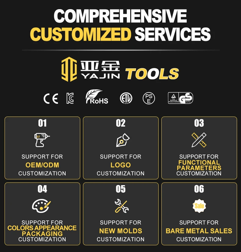 Kit de herramientas de mano eléctricas inalámbricas de acero inoxidable multifuncional portátil de nivel de entrada YaJin, estuche rígido para uso doméstico personalizado